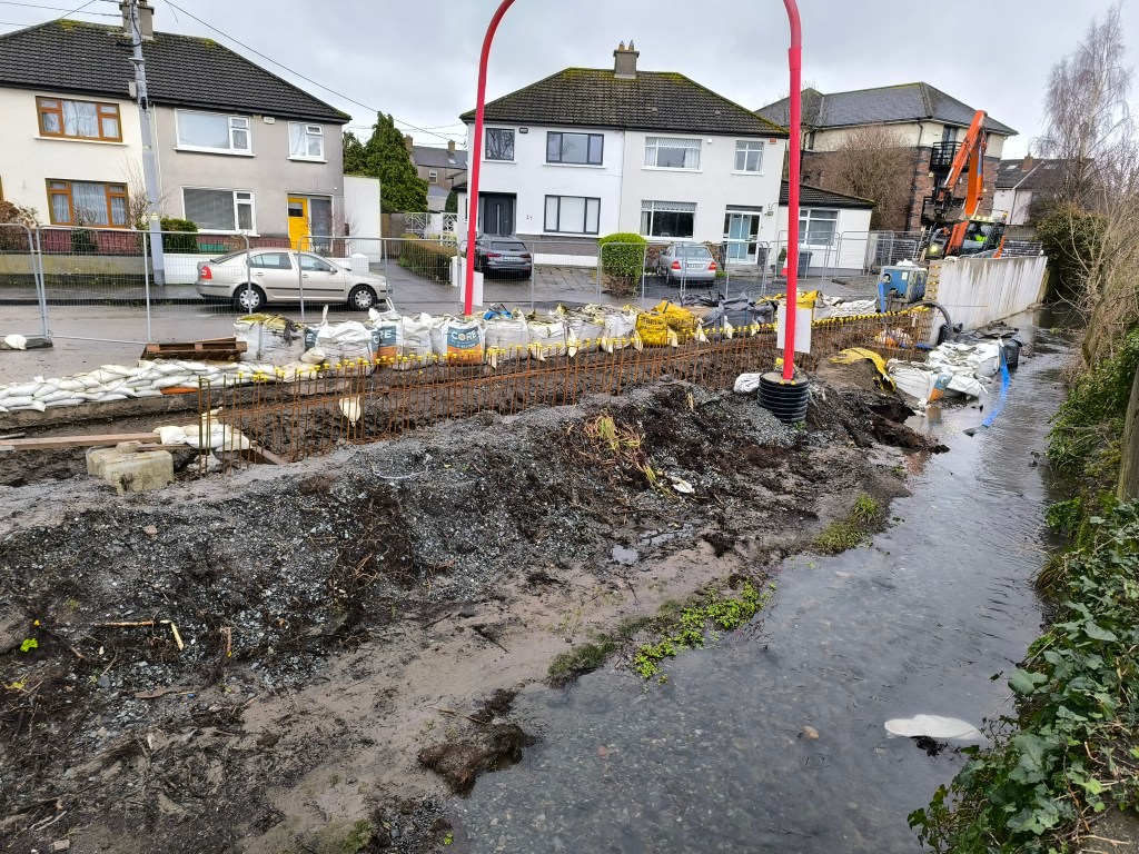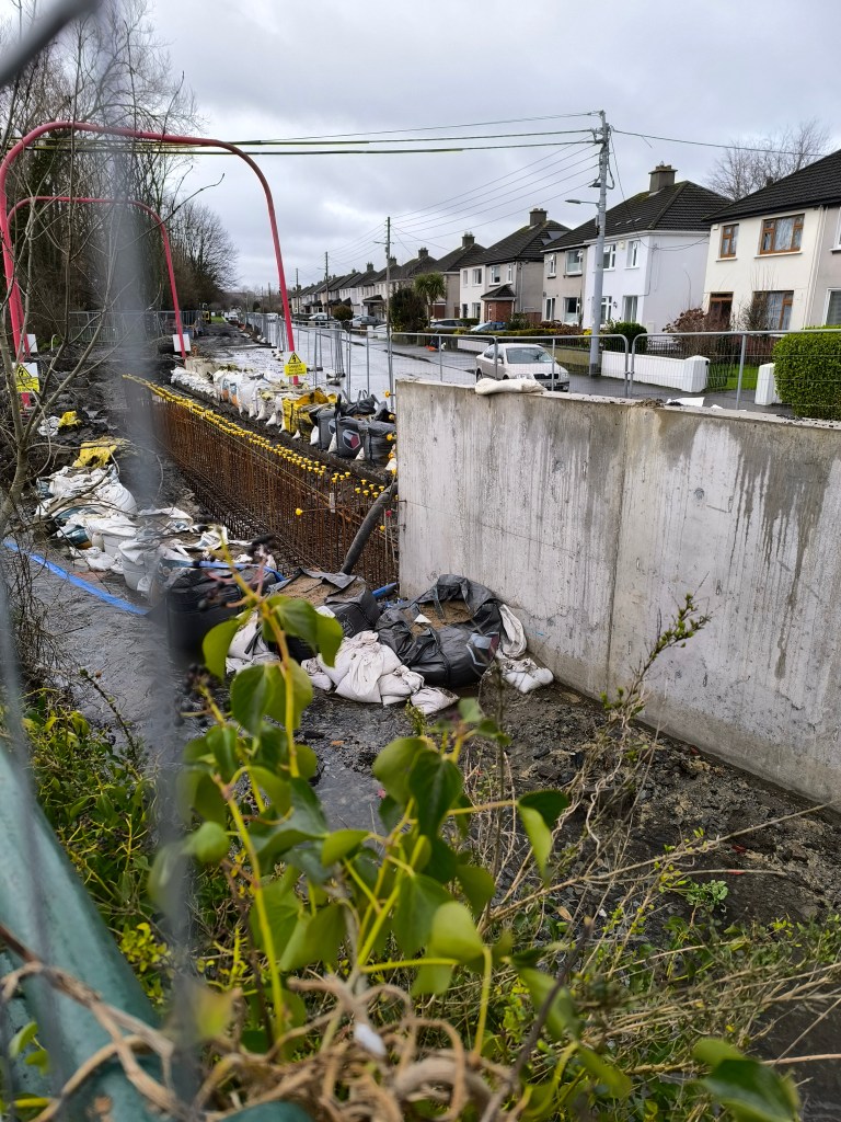 As part of her research on flooding, Kim joined me to do a bit of walking with the river Poddle between the Grand Canal and Ravensdale Park. If you’d like to go on a flood justice walking tour, get in touch anytime!